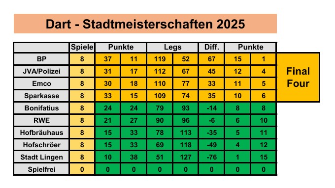 - Stadtmeister wird in einem Finalturnier der besten 4 ausgespielt