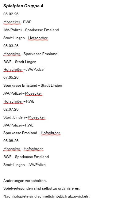 - Erster Spieltag 8.1.25 im Hofbräuhaus Lingen